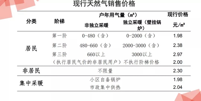 2、調(diào)整城市天然氣銷售價格。在調(diào)整配氣價格的同時,在理順上游居民用氣增幅0.056元每立方米,一階居民氣價共計上調(diào)0.086元每立方米。