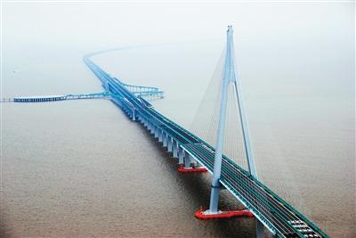 建設(shè)中的杭州灣跨海大橋(資料圖片)