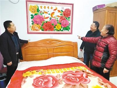 圖為貧困戶(hù)高玉英帶領(lǐng)駐村幫扶干部和村干部參觀危房改造后的新家。
