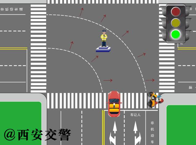 道路情況一:轉(zhuǎn)彎的非機(jī)動車通過有交通信號燈路口