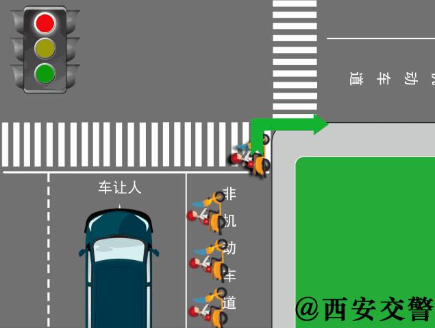 (一)轉(zhuǎn)彎的非機(jī)動車讓直行的車輛、行人優(yōu)先通行