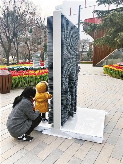 根據(jù)伍先生反映的情況,24日上午,記者來(lái)到位于高新區(qū)的創(chuàng)業(yè)咖啡街區(qū),在街區(qū)北側(cè)廣場(chǎng)上,記者看到伍先生提到的4座三維人體百變針雕。整個(gè)針雕是一個(gè)類似大相框的鐵架子,中間放置了上千根塑料材質(zhì)的針管。人只要向這些針管靠進(jìn)去,對(duì)面就會(huì)印出一個(gè)立體的人形,非常有趣。然而記者注意到,雖然每個(gè)大鐵框下方預(yù)留有螺絲孔,但卻沒有進(jìn)行固定,F(xiàn)場(chǎng),不時(shí)有孩子和市民好奇地在上面玩耍。
