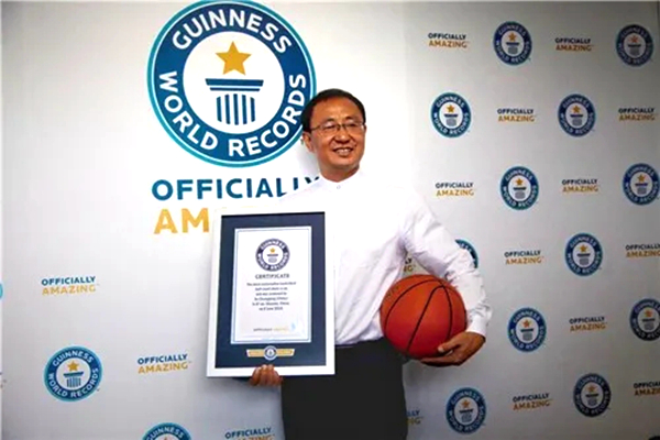 (徐長清2016年打破半場(chǎng)超遠(yuǎn)投籃六連中吉尼斯世界紀(jì)錄時(shí)領(lǐng)獎(jiǎng)留影 攝影 姚建宇)