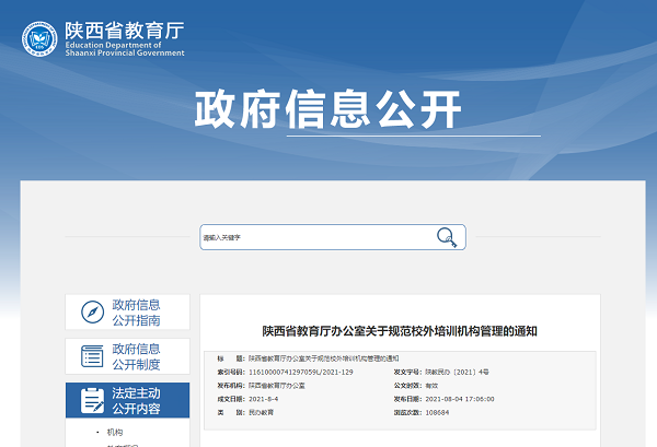 8月4日,陜西省教育廳辦公室發(fā)布關(guān)于規(guī)范校外培訓機構(gòu)管理的通知,要求校外培訓機構(gòu)立即停止義務(wù)段暑期學科培訓,嚴禁培訓機構(gòu)以學前班、幼小銜接班、思維訓練班、素質(zhì)拓展等名義面向?qū)W齡前兒童開展線下學科類(含英語)培訓。