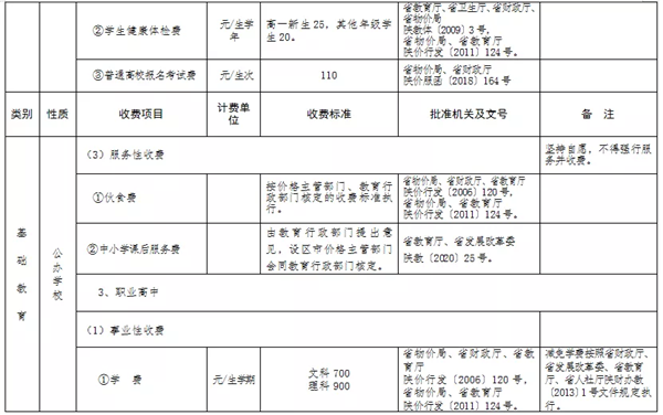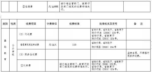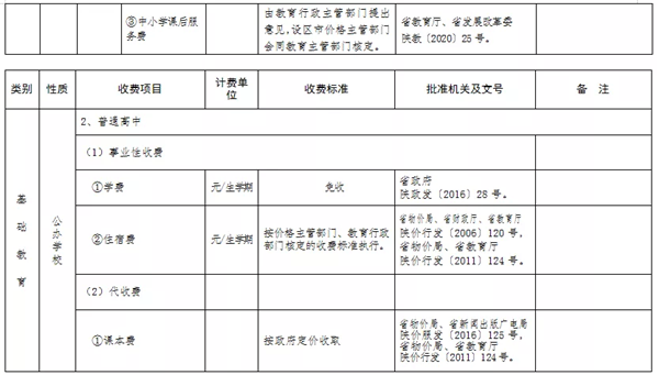 附件:陜西省2022年春季中小學(xué)校收費(fèi)一覽表