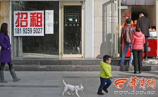 寒潮如期而至,2016年剛剛開(kāi)始,古城西安已經(jīng)下了三場(chǎng)雪,溫度也越來(lái)越低。細(xì)心的你會(huì)發(fā)現(xiàn),走在大街小巷里,很多門(mén)面房是空的,而且空的店鋪都貼著招租、轉(zhuǎn)讓的……