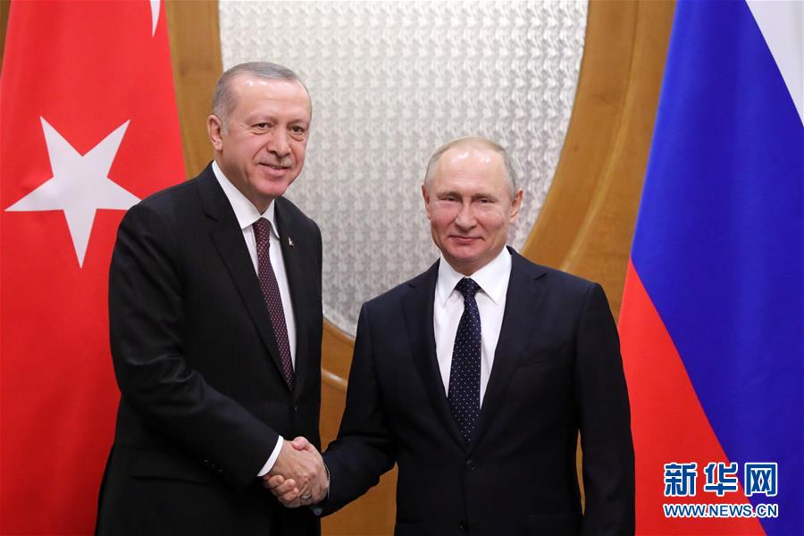 2月14日,在俄羅斯索契,俄羅斯總統(tǒng)普京(右)會見土耳其總統(tǒng)埃爾多安。 新華社/衛(wèi)星社