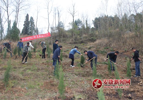 安康新聞網(wǎng)訊(通訊員 崔培)3月17日早上,縣河鎮(zhèn)全體干部職工一起來到紅升社區(qū)二組后坡,大家揮起鋤頭,每人栽下了側(cè)柏樹,以前冷冷清清的山坡上今天是一片繁忙景象。