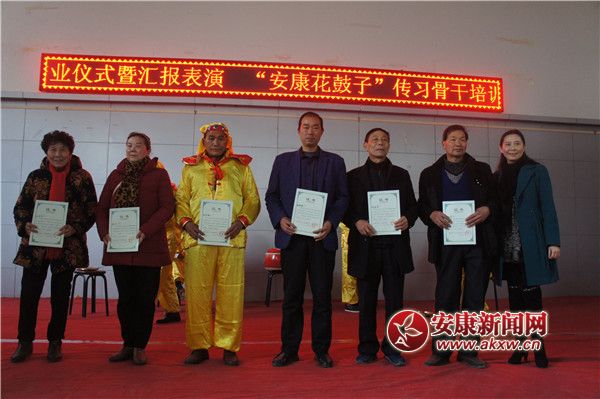 安康新聞網(wǎng)訊(通訊員 惠星 年靜) 12月2日,由安康市非遺保護(hù)中心、漢濱區(qū)文化館、區(qū)非遺保護(hù)中心共同舉辦的“把根留住•我眼中的非遺——安康花鼓子傳習(xí)骨干培訓(xùn)班結(jié)業(yè)儀式暨匯報表演”在安康市漢濱區(qū)文化館隆重舉行,首期參加培訓(xùn)的40名學(xué)員現(xiàn)場展示學(xué)習(xí)成果,并獲得結(jié)業(yè)證書。
