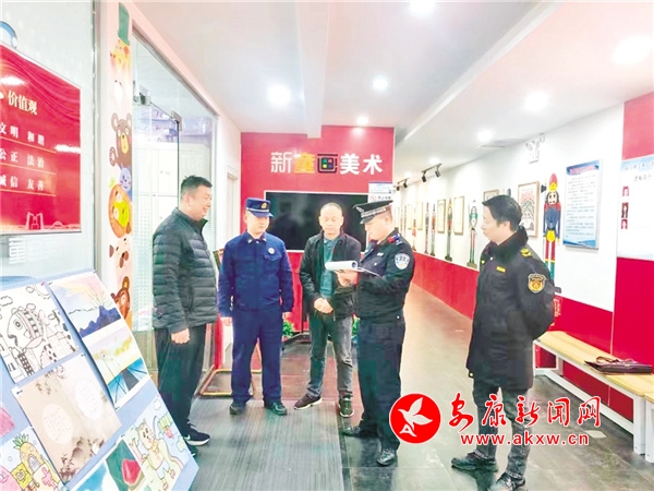 本網(wǎng)訊(通訊員 余遲 周珣)為進一步加強藝術(shù)類校外培訓(xùn)機構(gòu)監(jiān)管,規(guī)范培訓(xùn)機構(gòu)辦學(xué)行為,近期漢濱區(qū)文旅局與公安、市場監(jiān)管、消防救援、民政、行政審批、科技等部門開展聯(lián)合執(zhí)法檢查。