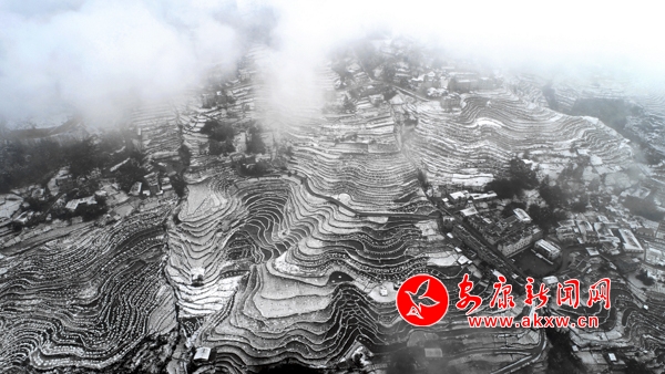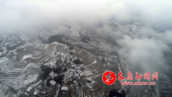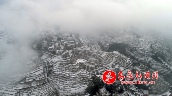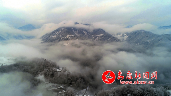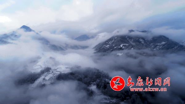 1月31日,嵐皋縣官元鎮(zhèn)雪后景色美輪美奐,山村宛若童話世界。(張昊 攝)