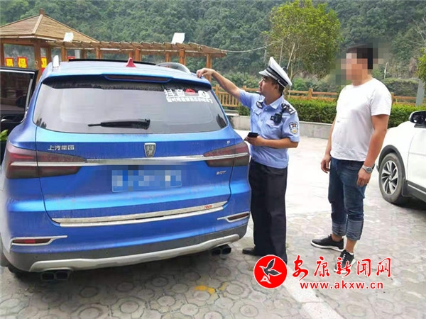 “當(dāng)時我看這輛車的顏色和普通汽車的顏色很不一樣,車子表面在陽光的照射下會有反光,所以我們將他攔停并檢查。”中隊民警說,“攔下來一檢查,果然車主私自變更了顏色,該車行駛證上登記的車身顏色為白色,擅自將其變?yōu)樗{(lán)色,并且沒有變更登記事項。”