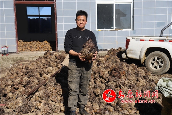 該公司經(jīng)理張乾運告訴筆者,今年1000畝大黃他們隨手挖出一株大黃進行稱重,重量達到了10余斤,長勢十分喜人。湖北、成都藥材商人上門收購,目前,已銷售鮮大黃400余噸,產(chǎn)值達到100余萬元。張乾運看著豐碩的收成和一摞摞的訂單,抱著10余斤的大黃喜悅溢于言表。
