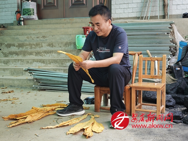 △ 趙灣鎮(zhèn)黨委書記劉孝勇查看烤煙成色