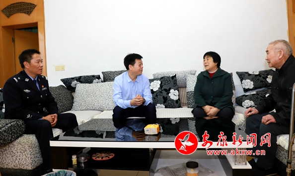 10月16日上午,縣委常委、政法委書(shū)記、公安局黨委書(shū)記、局長(zhǎng)郭子平帶領(lǐng)局黨委委員、政工室主任李茂成走訪慰問(wèn)了革命烈士、全國(guó)公安系統(tǒng)二級(jí)英雄模范羅春明的父親——縣公安局退休老民警羅宗惠同志。郭子平局長(zhǎng)與羅宗惠夫婦進(jìn)行親切交談,了解他們的身體、生活情況,對(duì)羅宗惠同志在公安工作崗位辛勤耕耘付出,培養(yǎng)出了子承父業(yè)、全縣全市全省乃至全國(guó)優(yōu)秀人民警察隊(duì)伍中的杰出代表羅春明,父子二人為紫陽(yáng)縣的公安事業(yè)發(fā)展進(jìn)步做出的巨大貢獻(xiàn),表示崇高的敬意和衷心的感謝!郭子平局長(zhǎng)向羅宗惠同志匯報(bào)了今年以來(lái)全縣公安工作和隊(duì)伍建設(shè)情況,征求羅老對(duì)紫陽(yáng)公安工作的意見(jiàn)和建議。臨別前,郭子平局長(zhǎng)向羅老贈(zèng)送了慰問(wèn)品,反復(fù)叮囑羅老夫婦養(yǎng)好身體,安享晚年,隨時(shí)電話聯(lián)系反饋困難,局黨委會(huì)第一時(shí)間解決。