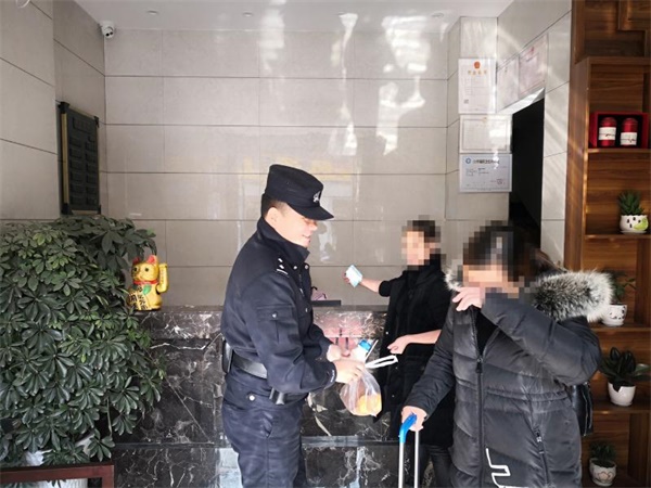 通過緊張有序的工作,很快查明該女子在縣城某賓館,民警快速前往,在該賓館找到正在自殘的湖南女子涂某,此時(shí)涂某雙手腕部均被銳器劃傷,民警通過大量勸說工作,并買來藥物,對(duì)涂某的傷口進(jìn)行包扎,看到忙得滿頭大汗的民警,涂某逐漸恢復(fù)理智,放棄輕生。