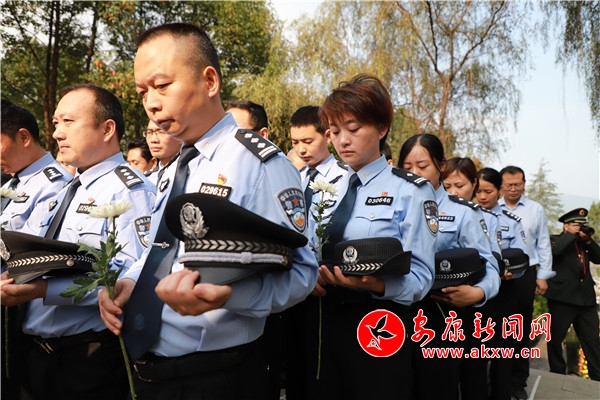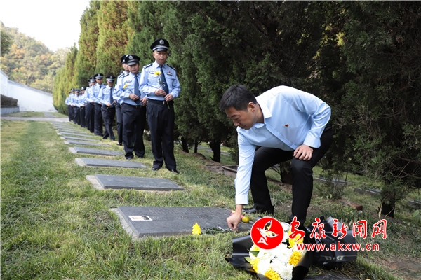 全體公安民警來到原紫陽縣公安局煥古派出所民警、革命烈士、全國(guó)公安系統(tǒng)二級(jí)英雄模范羅春明墓碑前,依次獻(xiàn)花、行鞠躬禮,并為長(zhǎng)眠于此的革命烈士掃墓。