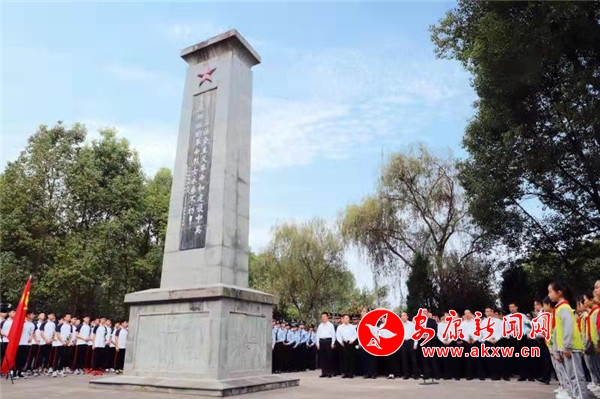 紫陽小學(xué)學(xué)生齊唱《我們是共產(chǎn)主義接班人》。全體人員手持白菊花,依次向革命烈士紀(jì)念碑獻(xiàn)花,行鞠躬禮,寄托深切哀思。