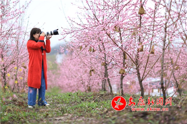 游客們穿梭在桃林間賞花拍照,攝影愛(ài)好者們拿起手中的相機(jī),以專業(yè)的攝影技巧、獨(dú)特的視角和充滿靈感的鏡頭,定格桃園的美景。
