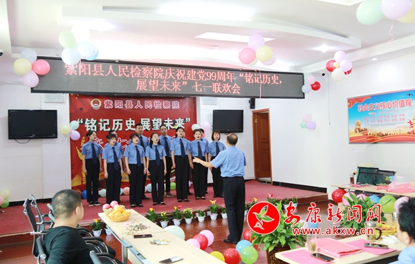 本網(wǎng)訊 (通訊員 汪濤)6月29日,安康市紫陽縣人民檢察院六樓會(huì)議室張燈結(jié)彩氣氛熱烈。為慶祝中國共產(chǎn)黨成立99周年,該院開展了“慶祝建黨99周年暨優(yōu)秀黨員表彰大會(huì)”“黨課開講啦”“銘記歷史 展望未來”文藝聯(lián)歡活動(dòng)。