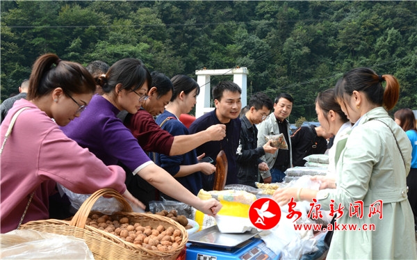 本網(wǎng)訊(通訊員 姚秋晨 黃志順) “給我稱10斤核桃,5斤干洋芋果果。”“土雞來兩只。”“買2個艾草枕頭。你這艾草足浴包咋賣的呢?”“雙節(jié)”前夕,紫陽縣毛壩鎮(zhèn)觀音村的集市熱鬧非凡。從來都是觀音村的群眾逢三六九到鎮(zhèn)上趕集,如今鎮(zhèn)上、縣上、市上的人都到村里買東西來了。